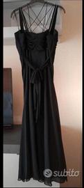 Bellissimo abito da cerimonia, nero, lungo impreziosito sul décolleté con strass. Fascia incrociate sulla schiena e annodato in vita. Usato solo una volta in ottimo stato, taglia 50, misure 123cm lnghezza, 49 larghezza petto. Coppe imbottite. Contattate Per altre foto o info