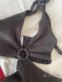 Vestito/abito lungo, con anello centrale. Il vestito si annoda dietro al collo per cui è regolabile. Taglia unica