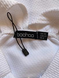 Vestito bianco lungo. Nuovo con cartellino, marca Boohoo. Taglia 42, tessuto elasticizzato. Lunghezza 114 cm