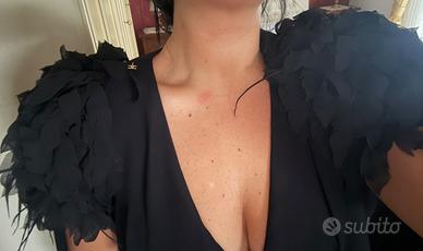 Vendo Abito Elisabetta Franchi messo 1 sola volta come nuovo, taglia 44/46 in ottime condizioni con spacco laterale e piume sulle spalle, il prezzo è trattabile no perditempo, pagato 600€ lo vendo la metà