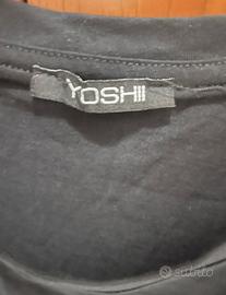 Vestito lungo estivo nero Yoshii in 100% cotone Made in Italy, taglia S/M, maxi t-shirt dress con logo glitter fucsia, lunghezza 96cm e larghezza spalle 45cm, comodo e traspirante, ideale per look casual o streetwear, distribuito da Magifra, condizioni eccellenti, perfetto per la stagione estiva stampa glitterata fucsia sul davanti nuovo mai indossato spedizione disponibile ho anche altri vestiti abiti per bambini adulti seguimi per restare aggiornato