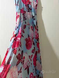 Elegante e fresco vestito lungo perfetto per la stagione estiva! La stampa floreale è il colore azzurro lo rendono ideale per eventi estivi, serate eleganti o anche per una passeggiata al mare. La sua leggerezza e il design fluido lo rendono comodo e adatto a diverse occasioni