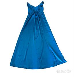 Vestito nuovo cucito su misura con scollo a V modello impero. Mai indossato. Materiale cady. È una 40 ma avendo una cucitura con elastico dietro la schiena può calzare anche una 42.