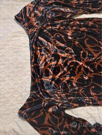 Bellissimo abito lungo in morbido velluto (Velluto a cost/stampato) con un'elegante fantasia colore bronzo. Taglia: Non è presente l'etichetta, ma veste come una XL / 2XL.