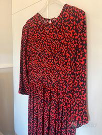 Vestito lungo in vescosa a fantasia rossa leopardata. Bellissimo vestito, comodo e adatto alla primavera, estate e autunno. È ampio e veste morbido, io lo usavo con una cintura in vita per renderlo un po’ più affiancato. Come nuovo