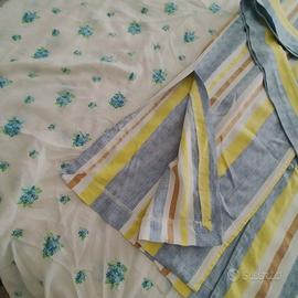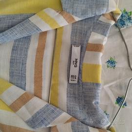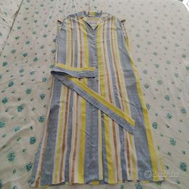Vestito lungo Mango taglia L. Tutto abbottonato davanti con cintura della stessa stoffa e spacchi laterali. Smanicato. In misto lino/cotone nelle tonalità del bianco, giallo, azzurro e beige. In ottime condizioni. Pari al nuovo.
