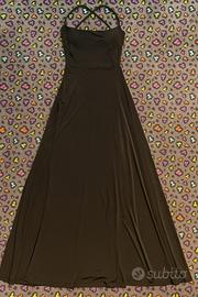 Elegante vestito lungo nero con spacco laterale sinistro, perfetto per occasioni speciali o serate estive.