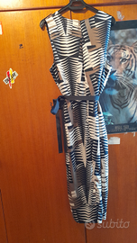 Bellissimo vestito usato pochissimo con cerniera linga dietro e scollatura davanti con spacco a ventaglio lunghezza 1 metro e cm.20 prezzo trattabile
