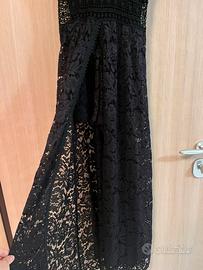 Vestito lungo in pizzo, colore nero, taglia unica , pantaloncino incorporato e spacco davanti, nuovo con cartellino