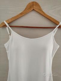 vestito lungo bianco con spalline regolabili e coppe preformate. spacco laterale. taglia unica ma veste una S. nuovo con etichetta. mai indossato.