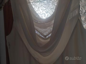 vendo vestito lungo colore bianco sporco, indossato 2 volte, semplice con richiamo a forma di v sul davanti e scollatura morbida sulla schiena, spacco profondo sulla gamba.