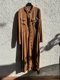 Camicia lunga color caramello, con bottoni neri frontali e due tasche sul petto.