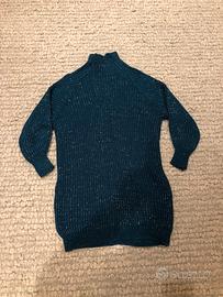 Vestito maglione collo alto colore blu con fili metallici scintillanti. Misure : ampiezza spalle 40 cm. Lunghezza 80 cm. Acrilico,
