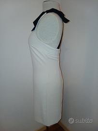 Vestito Mango, color cipria e nero. Con fiocco sulla spalla. È nuovo, con cartellino. Ideale per matrimoni o cerimonie. Taglia XS - ma veste anche una S Lunghezza abito 90 cm Circonferenza seno 80 cm Circonferenza vita 74 cm Circonferenza bacino 92 cm