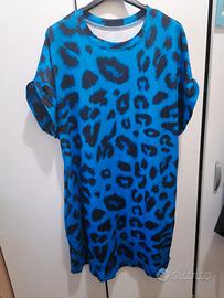 Fresco vestito donna maniche corte a pipistrello. Stampa leopardato. Taglia M.