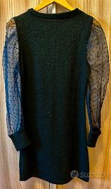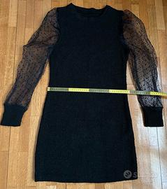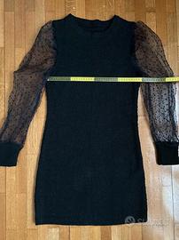 VESTITO CON MANICHE IN TULLE, COLORE NERO, SUL CARTELLINO TAGLIA UNICA MA CORRISPONDE AD UNA S (MISURE IN FOTO), TESSUTO INVERNALE, USATO POCHISSIMO IN OTTIME CONDIZIONI