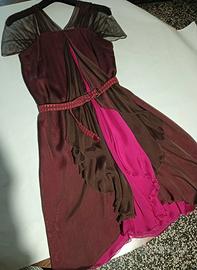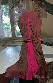Vestito in pura seta colore fucsia e marrone taglia 42 in ottimo stato.