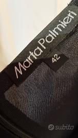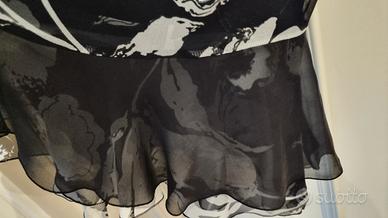 vendo abito nero fantasia fiori stilizzati bianchi 100% seta, Marta Palmieri tg 42 con taglio sottoseno cinta e voant al fondo. lunghezza totale dalla spalla 105.