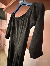 Taglia unica con spacco sul davanti,maniche a tre quarti e scollo a barca