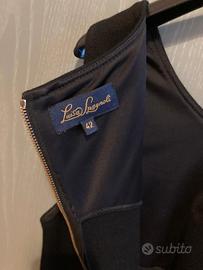 Vestito midi colore nero, di Luisa Spagnoli, tg. 42 italiana / M , senza maniche , con chiusura a cerniera , colore dorato a contrasto.