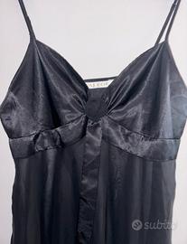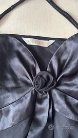 Vestito mini nero Valege in satin con dettagli in chiffon trasparente. Modello halter neck, leggero ed elegante. Taglia L, in ottime condizioni. Valege black satin mini dress with sheer chiffon details. Halter neck style, lightweight and elegant. Size L, excellent condition. OPEN TO OFFERS