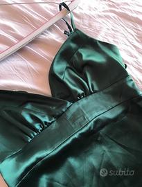 Vestito motivi verde smeraldo scuro, ha qualche piccolo difetto ma impercettibile ed una zip laterale