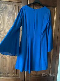 Vestito Nadine tg 44. Color blu di Prussia in tessuto leggero poliestere, con maniche a ventaglio. Come nuovo, utilizzato in una sola occasione. Vendo per non utilizzo