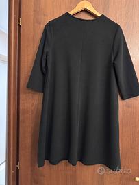 Vestito corto di volore nero, giro collo con disegni ricamati, leggermente svasato con msnica leggermente al gomito ..
