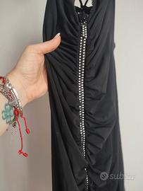 bellissimo vestito nero prodotto in Francia con cerniera lungo tutta la parte anteriore con inserti in Swarovski schiena scoperta