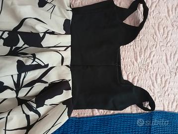 Vendo vestito nero con fantasia floreale sulla gonna, perfetto per ogni occasione, dal lavoro alle uscite con gli amici.