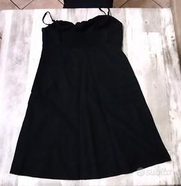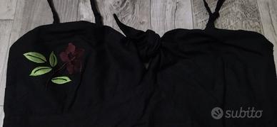 Vestito nero da donna estivo con ricami taglia 48. Spalline regolabili, elastico sul retro. 55% lino e 45% cotone. Possibilità di consegna a mano nella città di Torino e Cuneo