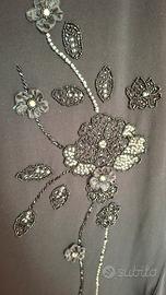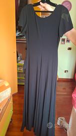 Vestito nero, elegante da matrimonio, lungo. Ricamo sul fianco perfetto senza perline mancanti Gonna "a portafoglio", maniche in velo Usato 2 volte, di qualità di "Enea couture"