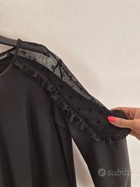 Vestito da sera, nero, con decoro in trasparenza sulle spalle