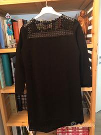 Vestito abbastanza elegante,nero con inserto cipria, alcuni tratti traforati. Usato pochissimo, taglia 42. Tessuto elasticizzato, cade molto bene e può essere indossato in molte occasioni. Marchio Oltre
