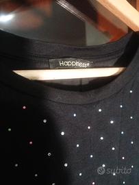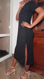 Bellissimo vestito midi firmato Happiness in colore nero, caratterizzato da un'elegante pioggia di strass luminosi su tutta la parte frontale.