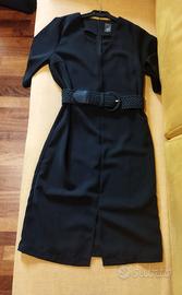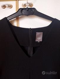 Vestito elegante nero Ichi, manica corta, diritto con spacchetto centrale davanti e dietro, con cintura, tessuto poliestere. (cintura compresa)