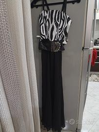 vestito nero lungo con corpetto zebrato con paiete cintura nera con fibia con paiette