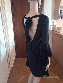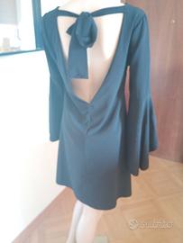 Vestito nero elegante con schiena scoperta e maniche a campana. Made in Italy. Descrizione: Bellissimo vestito nero, elegante e versatile, perfetto per diverse occasioni. Modello corto con linea morbida e vestibilità comoda. ✨ Dettagli: Colore: nero Maniche a campana (3/4) Scollo rotondo davanti Schiena scoperta con fiocco decorativo Tessuto leggero e fluido Lunghezza sopra il ginocchio 👗 Ideale per: serate eleganti, aperitivi, eventi o anche look casual chic con gli accessori giusti. 📏 Condizioni: ottime, usato 2 volte Misure: - lunghezza abito= 82 cm - spalle = 38 cm - spacco dietro schiena= 30 cm - maniche= da 33,5 a 60 cm 📦 Spedizione rapida Foto 100% originali