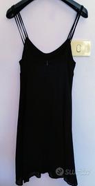 Cucitura sotto il seno e poi svasato. con doppia spallina. Viscosa, fodera di poliestere. Taglia 40