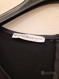 Vestito lunghezza al ginocchio (sono alta 165cm e ami arriva appena sopra il ginocchio), nero, svasato, maniche lunghe collo rotondo. Dettaglio alla manica bottone perla. Taglio sottoseno.