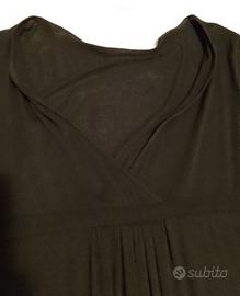 Vestito Sottomarino, nero al ginocchio, taglia 40, con maniche lunghe aderenti e laccio in vita per valorizzare la silhouette. Scollo a V sul davanti e delicati dettagli plissettati per un tocco raffinato. Perfetto per serate, eventi o look chic da giorno.