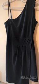 Abito nero elegante, vestito da sera monospalla, tubino con drappeggio, perfetto per eventi o cocktail.