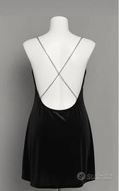 Spalline sottili a catena argentata che si incrociano sulla schiena, creando un bellissimo effetto schiena scoperta.
