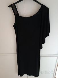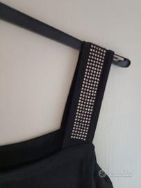vestito nero tg 44 il lanificio, stile tubino ma con aggiunta di manica pipistrello e bretellina con cristalli, tessuto elasticizzato, lunghezza arriva al ginocchio, su altezza 173