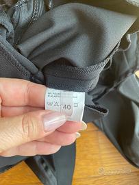 Bellissimo vestito nero ( marca Nell & me). Gonna al ginocchio in tessuto elasticizzato con spacco posteriore Corpino con scollo all’americana , scollato sulla schiena. Mai indossato. Vendo per taglia sbagliata. Taglia 40.