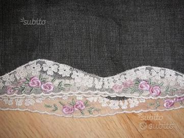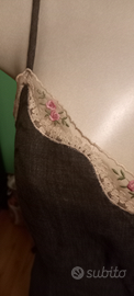 vestito spalla sottile lungo made in italy 100% LINO verde militare con rifiniture in pizzo ricamato con roselline . tenuto benissimo come nuovo. tg 42. NOTIZIE DI MARIELLA BURANI