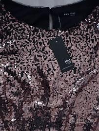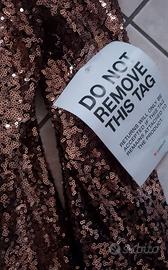 Vendo bellissimo abito foderato di "TFNC London", tg.52, ,larghezza delle spalle 45 cm, lunghezza manica 65, lunghezza vestito 103 cm.