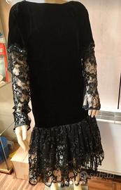 Vestito tg.42 firmato Fontana di velluto, tulle e paillettes.