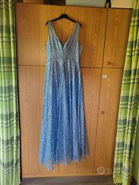 vendo a € 30 non trattabili,bel vestito marca PEARLY ,taglia 44/46,pagato 180 €,nuovo mai usato,colore azzurro