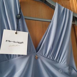 vestito per cerimonia color grigio/ azzurro nuovo con cartellino vendo a €30 per piccoli punti con fili tirati con unghie